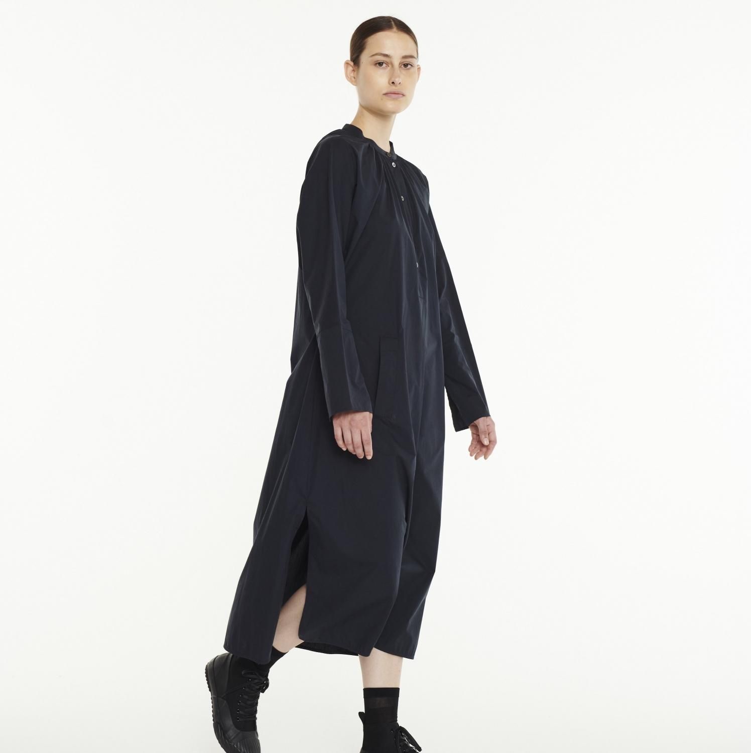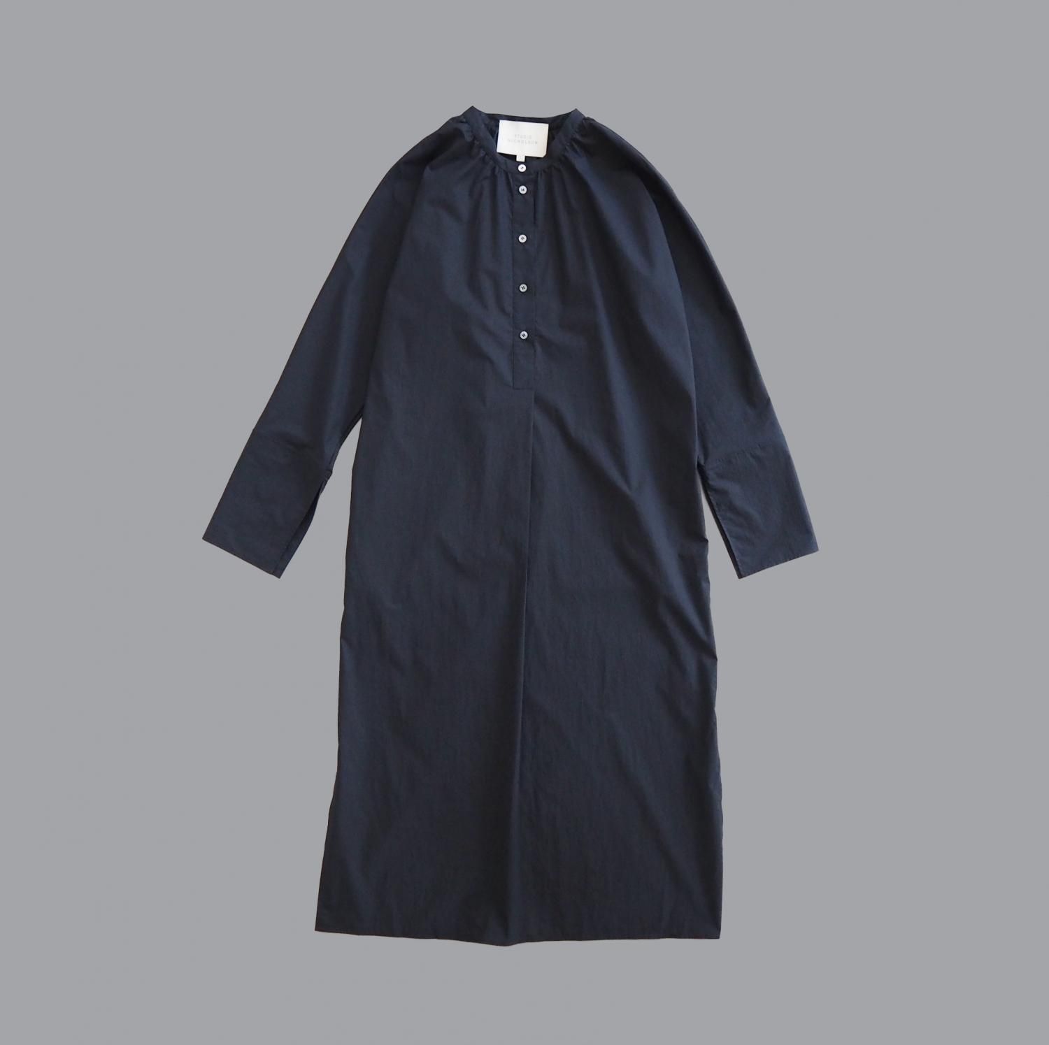 酵素によって洗いをかけた独特の風合いのコットン・ポリエステル生地を使用したシャツドレスです。裾とカフがスプリット仕様になっています。