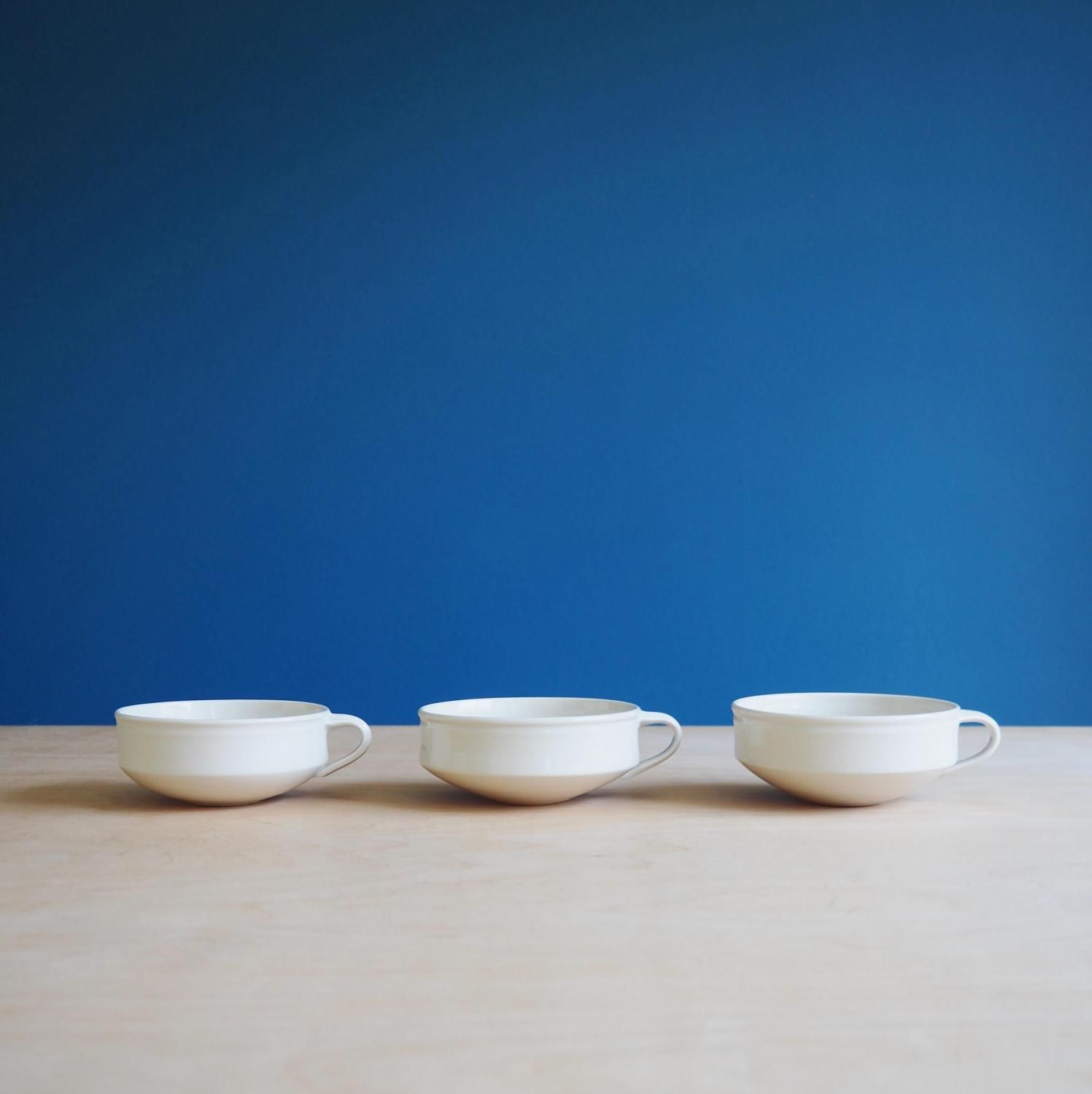 岩田哲宏のスープカップです。鳥取県の出身で現在は東京を拠点に活動する陶芸家 岩田哲宏。工業製品のような無機的で静かな佇まいの中に手の痕跡が仄かに残る器を制作しています。