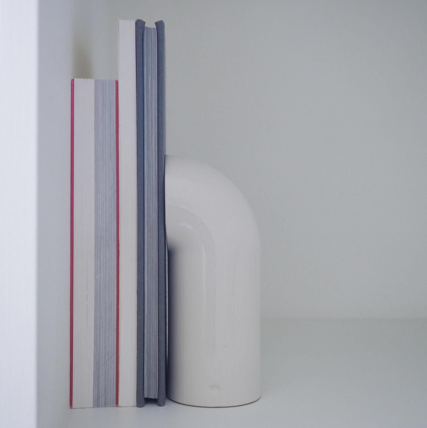 岩田哲宏の小さめのブックエンドです。鳥取県の出身で現在は東京を拠点に活動する陶芸家 岩田哲宏。工業製品のような無機的で静かな佇まいの中に手の痕跡が仄かに残る器を制作しています。