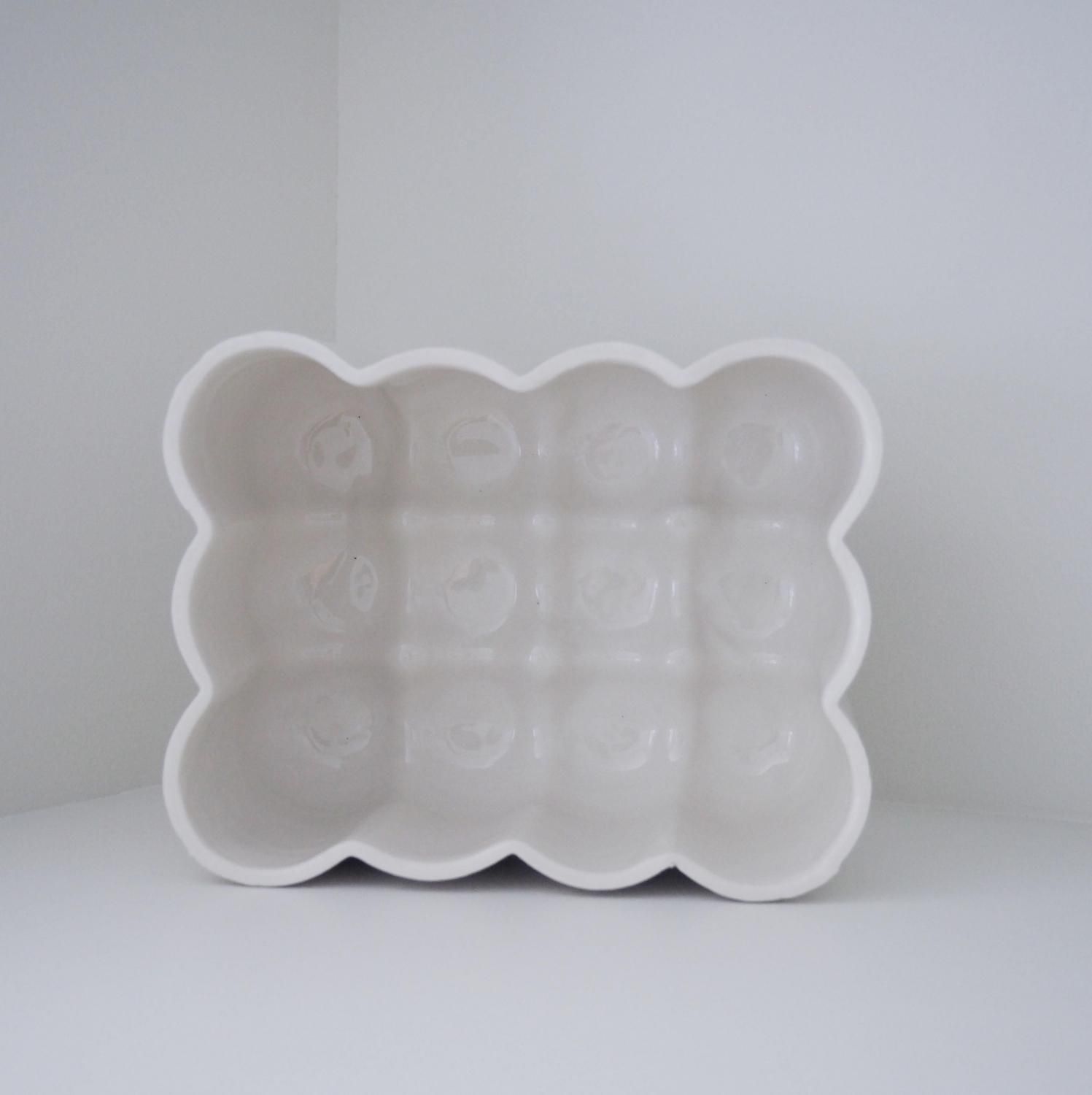 岩田哲宏のコンテナ(4×3)です。鳥取県の出身で現在は東京を拠点に活動する陶芸家 岩田哲宏。工業製品のような無機的で静かな佇まいの中に手の痕跡が仄かに残る器を制作しています。